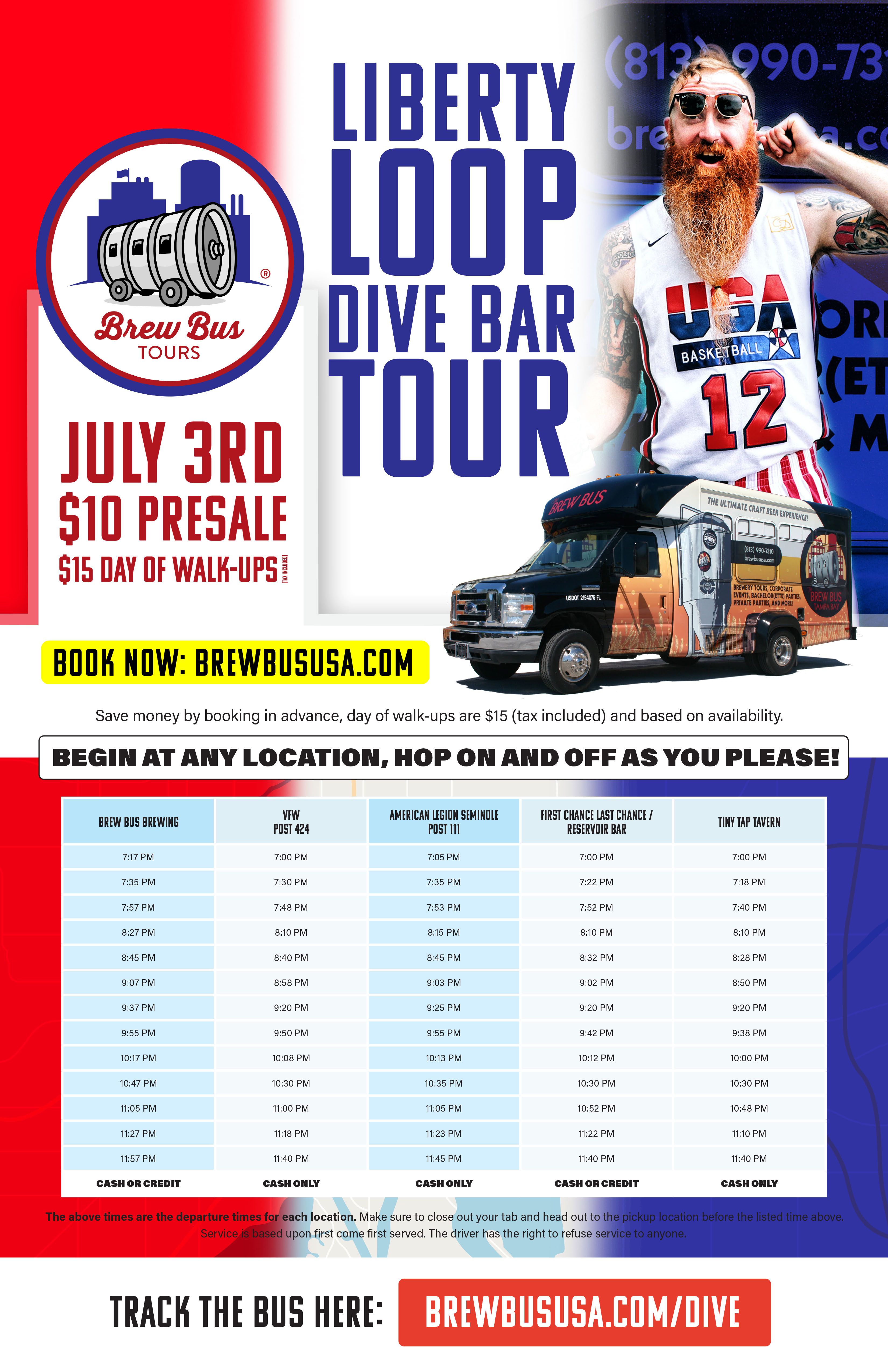 Hop on The Brew Bus for our annual Liberty Loop around Seminole Heights, Ybor, and the surrounding areas.